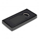 Square genuine leather key ring with smart matching stitching nicely presented in a black gift box.